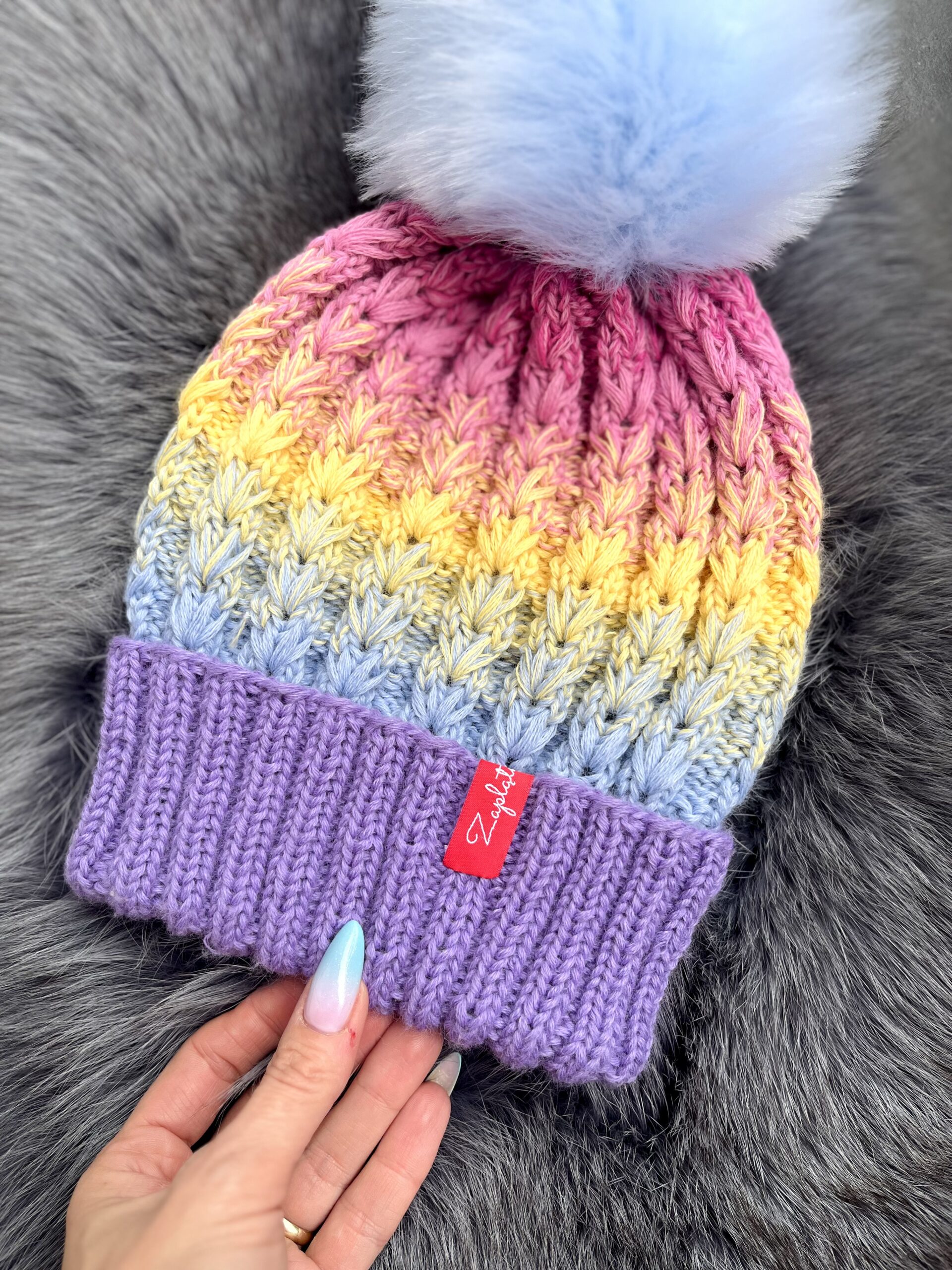 isabell to krótki, lekko oversizeowy sweter z obniżoną linią ramion i szerokimi rękawami. Miękka, włochata struktura podkreśla pastelowe pasy, a subtelne przejścia kolorystyczne sprawiają, że nawet proste ściegi wyglądają efektownie.
